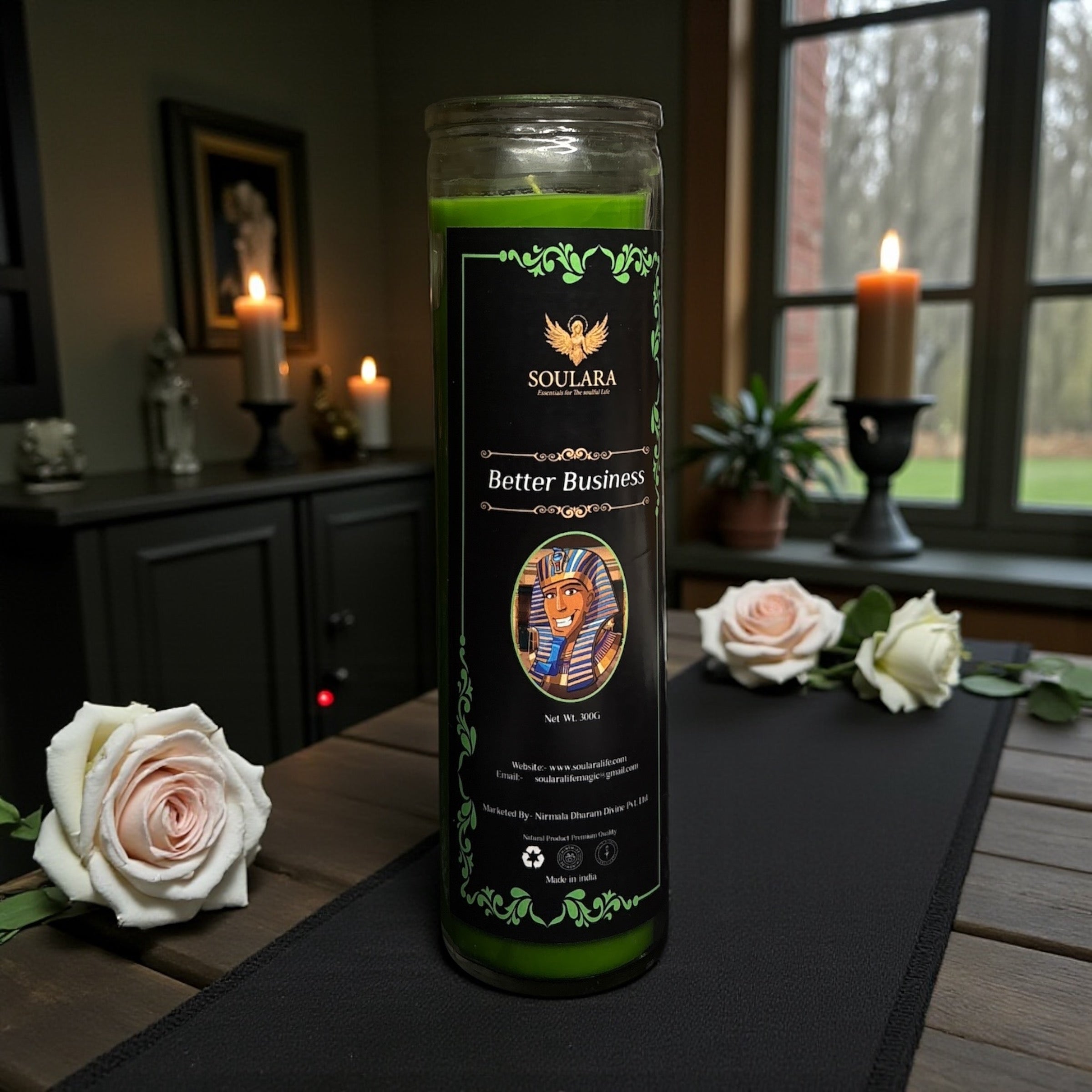 Crafted with high-quality wax and infused with spiritually symbolic elements traditionally associated with prosperity and success, this candle offers a steady and intentional burn. With a total weight of 300 grams, it is made for a 7-day ritual, with a recommended burn time of 4 hours per day, allowing consistent focus on your business intentions throughout the week.