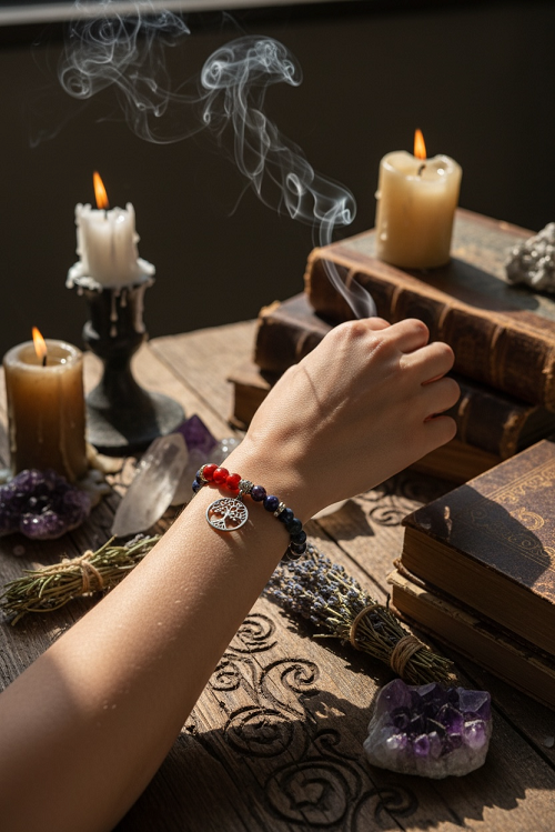 Before wearing, hold the bracelet and set a positive intention such as growth, peace, or balance.