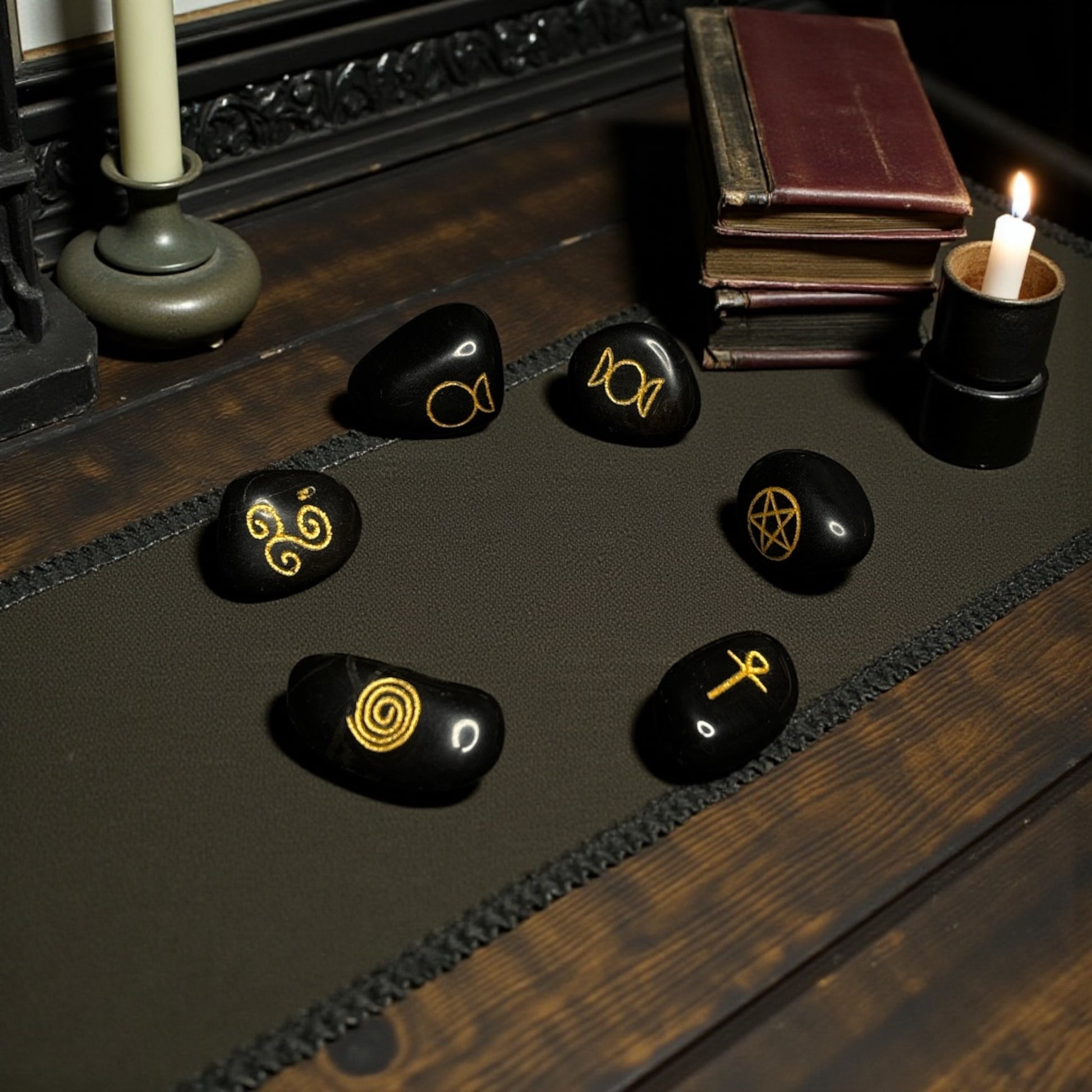 The Wicca Symbol Stone engraved on Black Agate is a powerful magical and spiritual tool used for protection, grounding, ritual work, and energy balancing. Black Agate is known for its strong protective and stabilizing properties, and when engraved with sacred Wiccan symbols (such as the Pentacle), it becomes an energetic shield and manifestation enhancer.