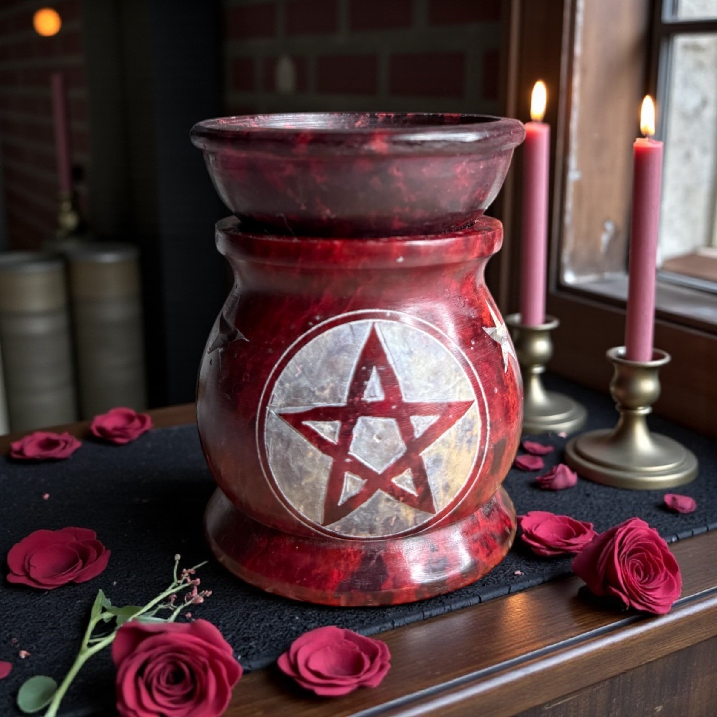 The Pentacle is one of the most powerful spiritual symbols, representing protection, harmony, and the five elements—Earth, Air, Fire, Water, and Spirit. This soapstone oil burner combines ancient symbolism with functional aromatherapy, making it a perfect tool for witches, healers, and spiritual practitioners.