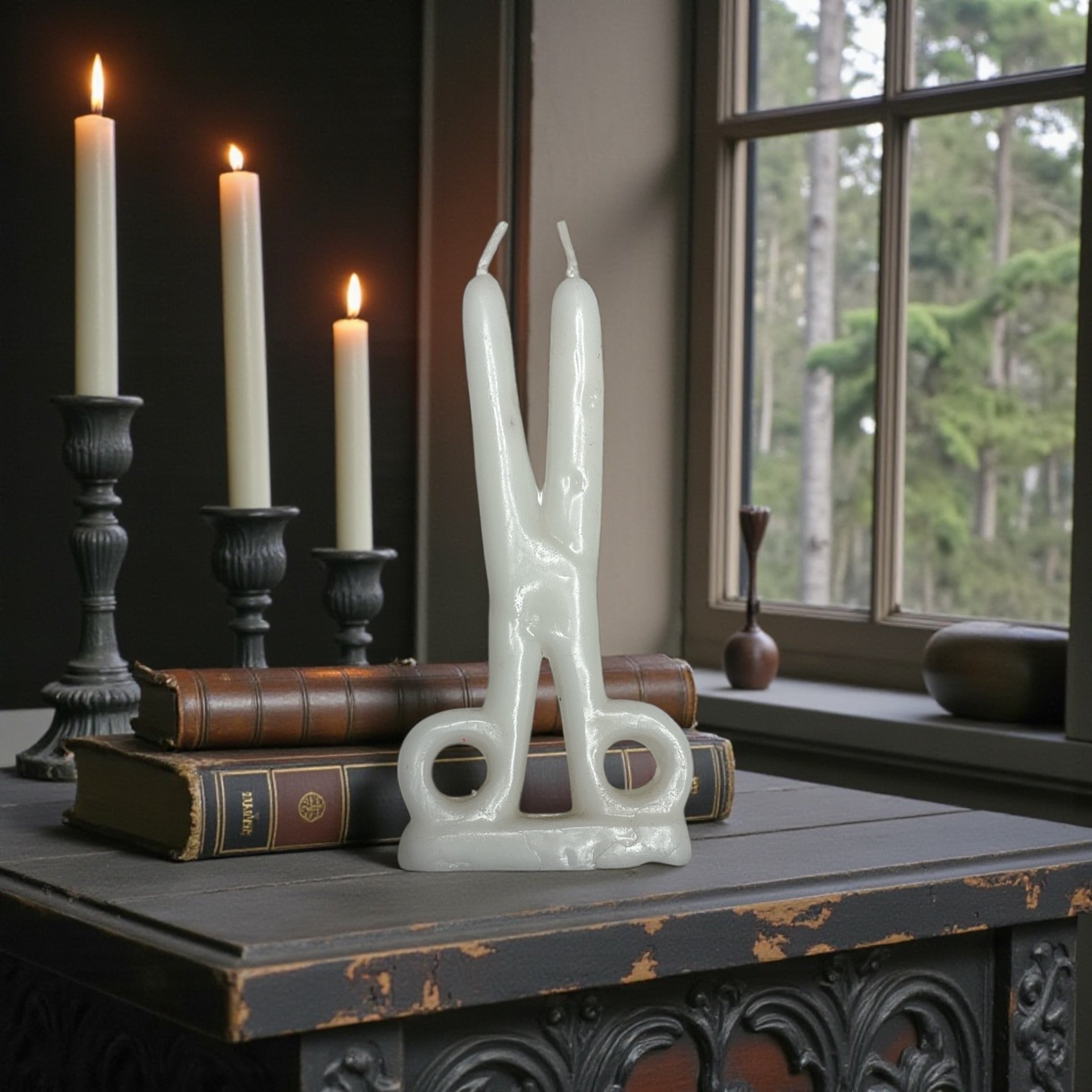 The White Scissor Spell Candle is a ritual candle designed to help release negativity, cut ties with stagnant energy, and promote clarity and transformation. The scissors symbolize separation from limiting situations, habits, or influences, while the white color represents purity, balance, and spiritual guidance.