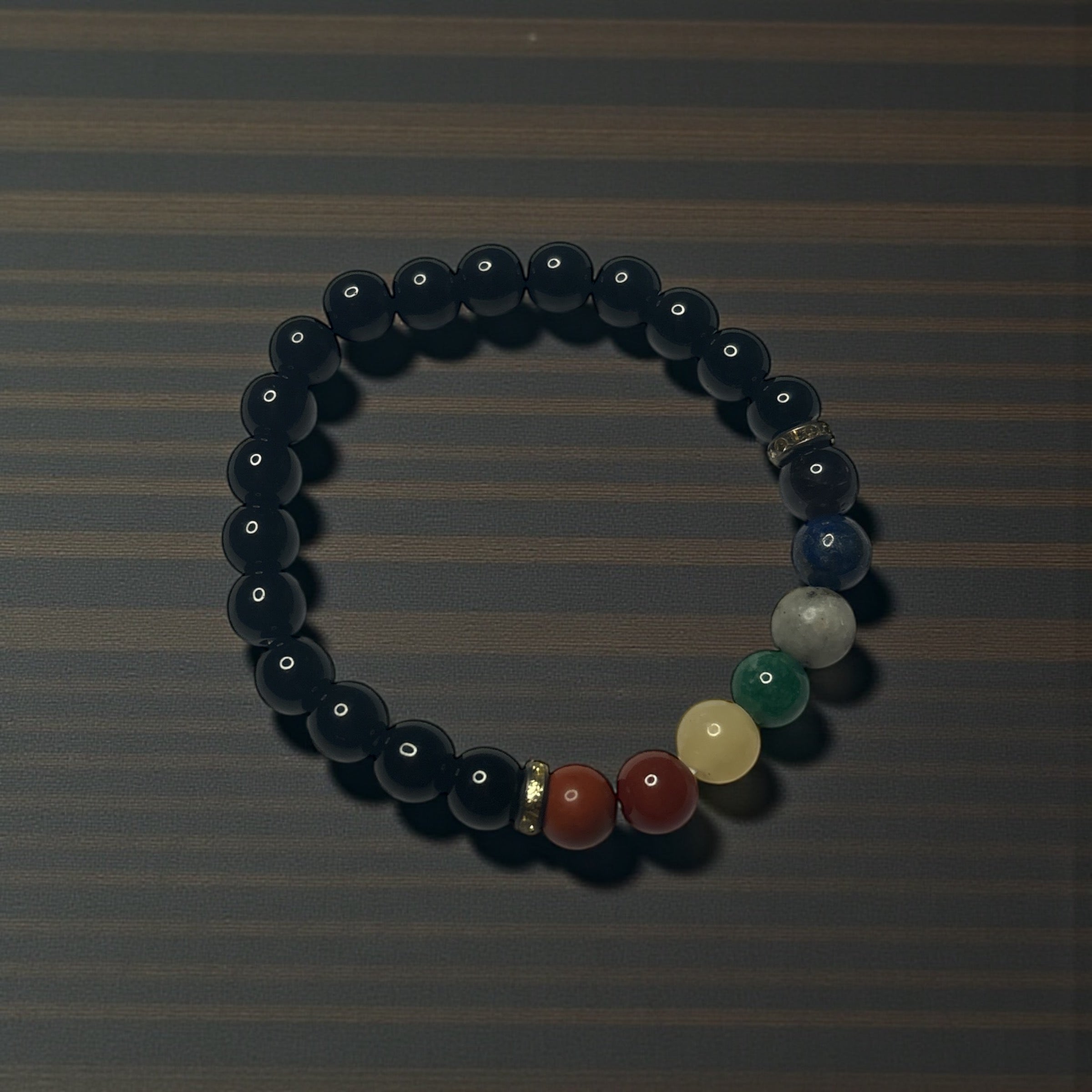 The 7 Chakra Black Obsidian Bracelet is a powerful spiritual accessory designed to promote protection, grounding, and overall energy balance. Crafted with natural black obsidian beads and seven chakra stones, this bracelet combines strong protective symbolism with elegant everyday style. It is ideal for daily wear, meditation, and mindfulness practices.
