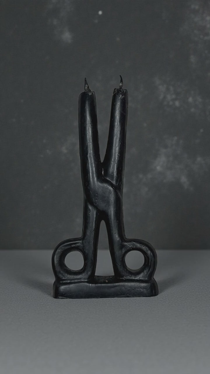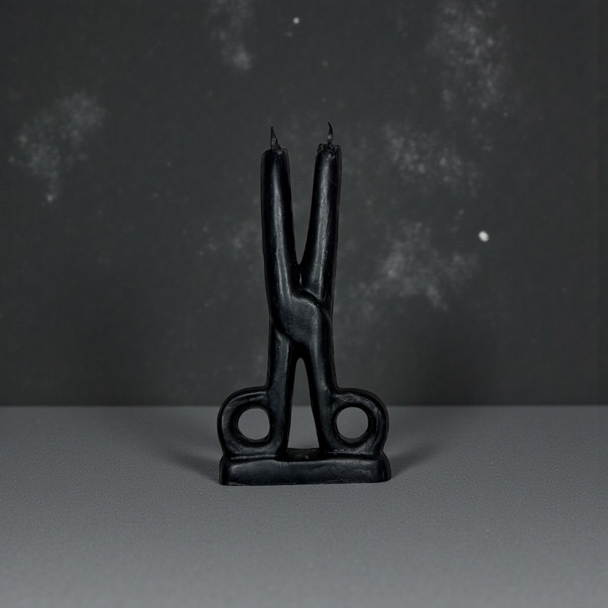 The Black Scissor Spell Candle is a ritual candle symbolizing separation, release, and energetic cutting. The scissor form represents the intentional act of cutting away what no longer serves—habits, attachments, emotional ties, or stagnant energies—while the black color supports protection, grounding, and transformation.