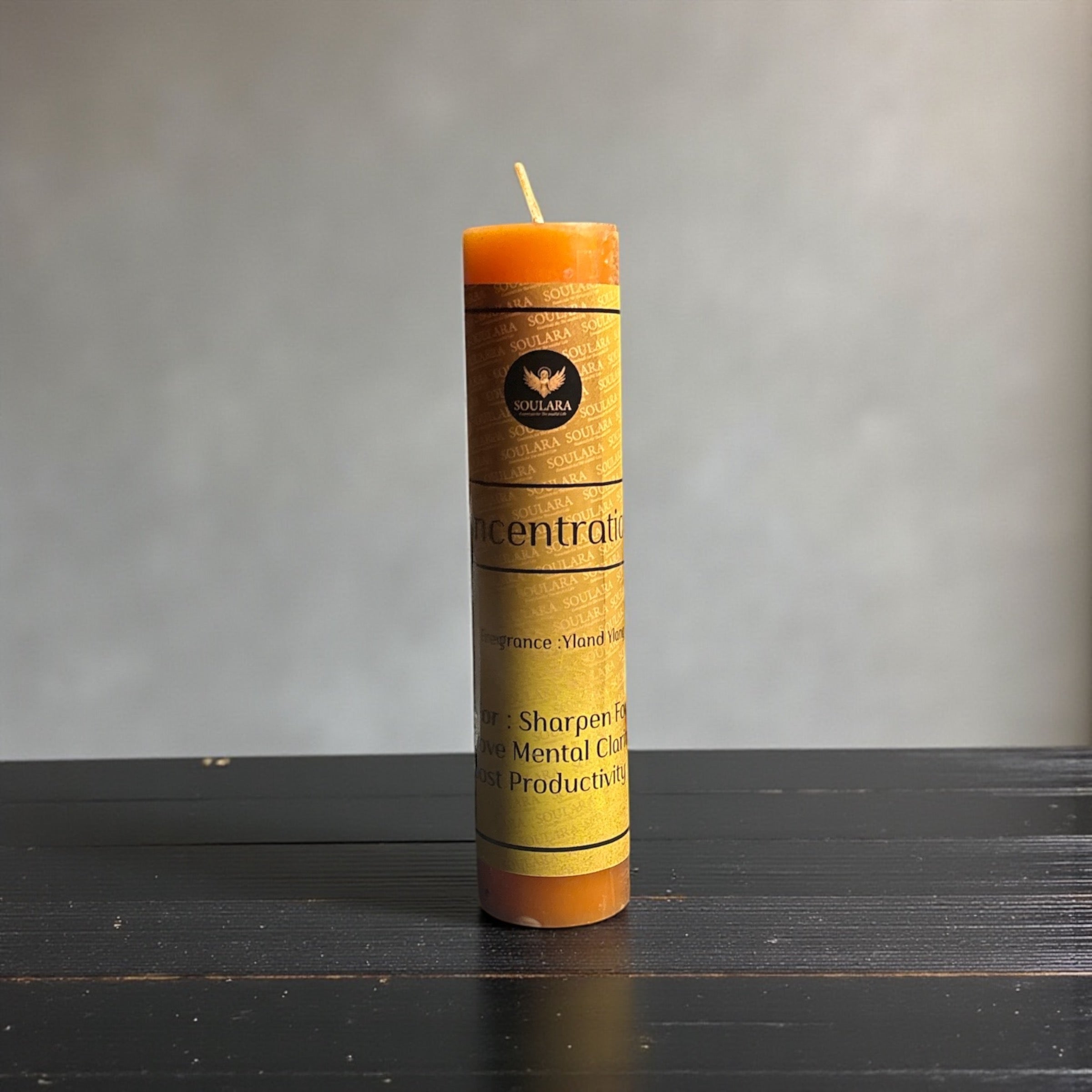 Our Concentration Candle is specially crafted to enhance focus, mental clarity, and productivity. Infused with the calming yet stimulating aroma of Ylang Ylang and Sandalwood, this candle creates a balanced environment that supports deep concentration, alertness, and a peaceful mind.
