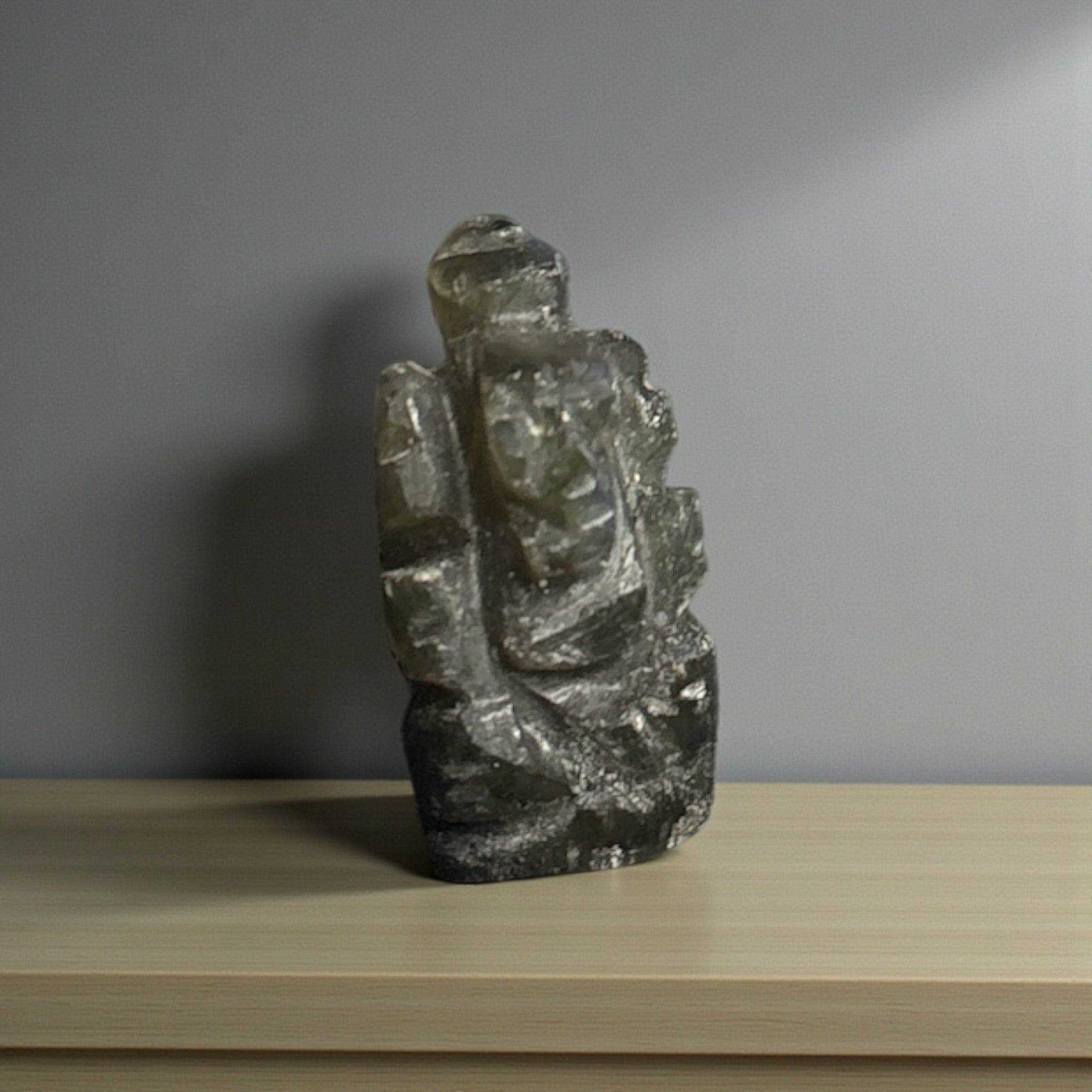 Labradorite, known as the “Stone of Transformation”, is revered for protection, intuition, and spiritual insight. When combined with Lord Ganesha’s energy, this figurine becomes a powerful talisman for removing obstacles, enhancing clarity, and attracting divine guidance. The natural iridescence of Labradorite also adds a visually stunning, mystical quality to this sacred piece.
