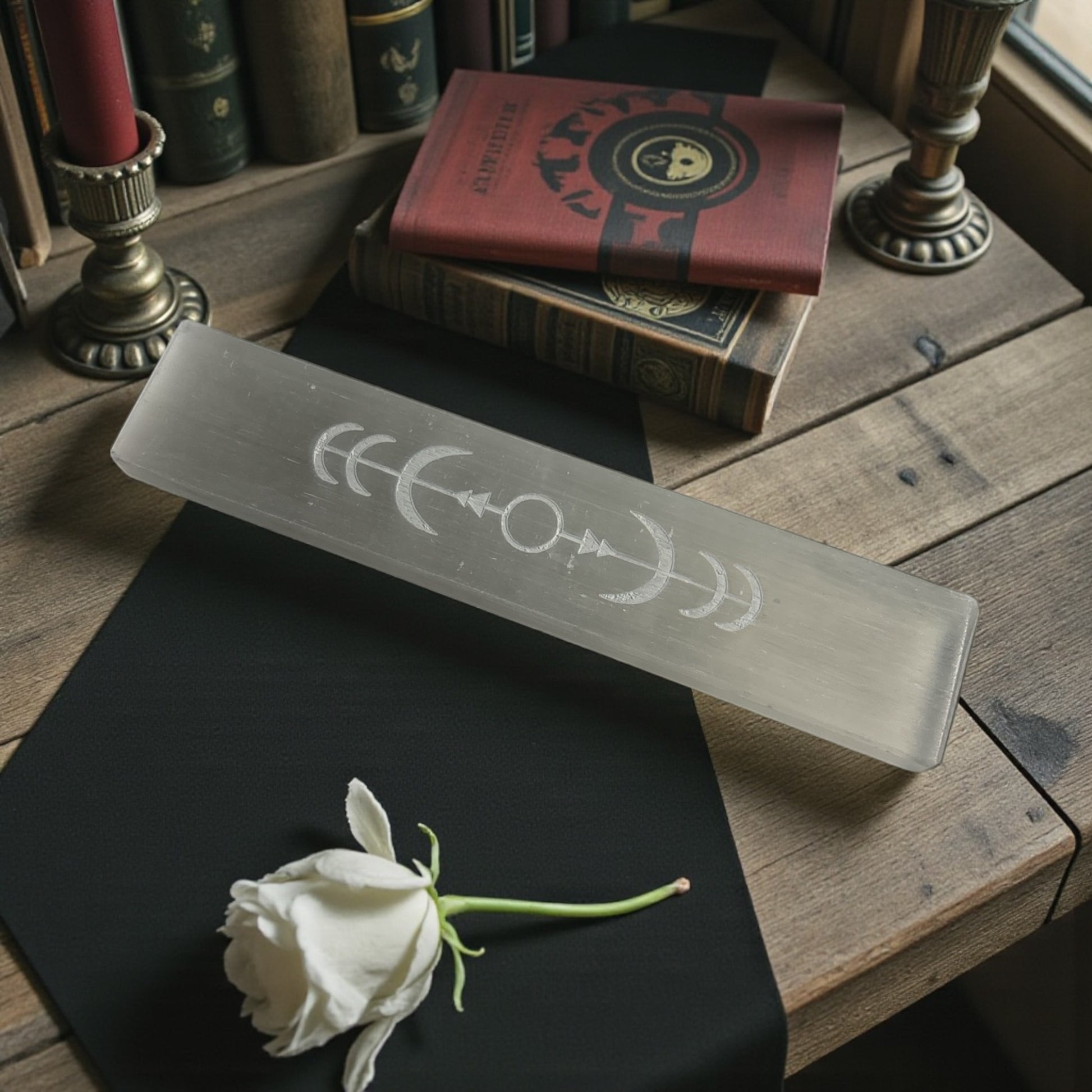This beautifully engraved strip combines the cleansing power of Selenite with the rhythmic energy of the moon, making it perfect for meditation, moon rituals, energy healing, and spiritual décor.