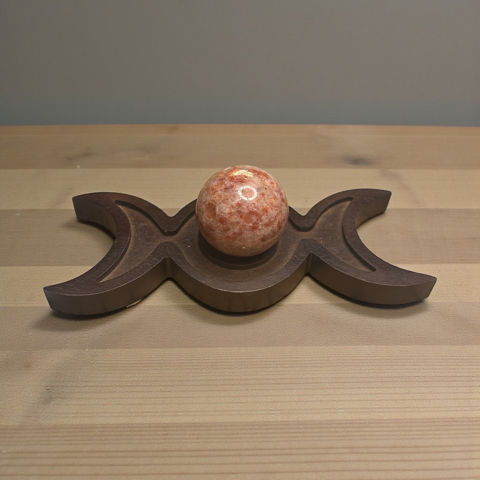 This Sunstone Sphere with Triple Moon Holder is more than a display piece—it is a powerful fusion of solar confidence and lunar wisdom, helping you shine brightly while staying spiritually aligned and protected. ☀️🌙✨