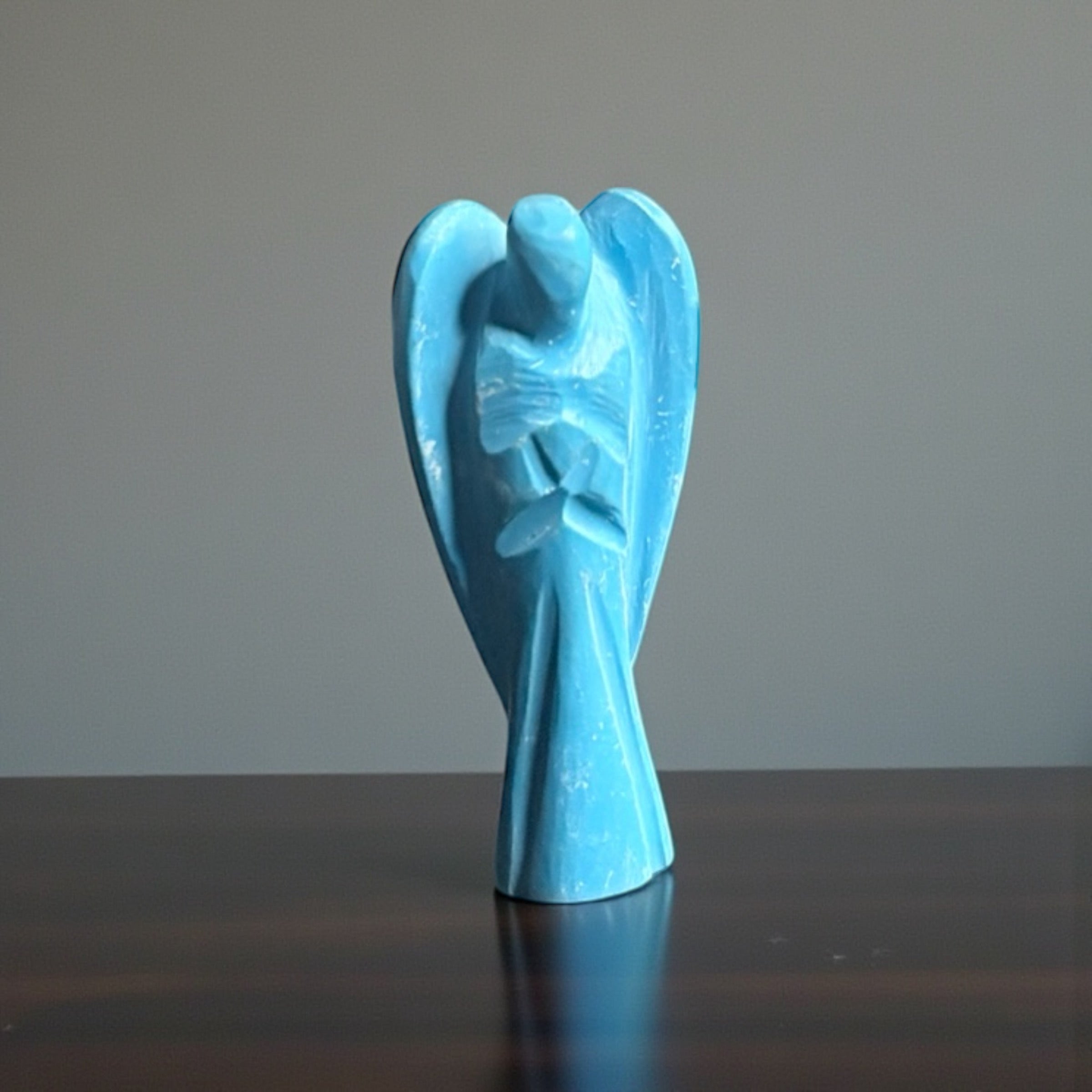The Turquoise Angel is a hand-carved crystal figurine designed to promote protection, communication, and spiritual balance. Made from natural Turquoise, this angel ranges from 1 to 2 inches, making it ideal for meditation, altar use, or carrying as a portable spiritual guide.