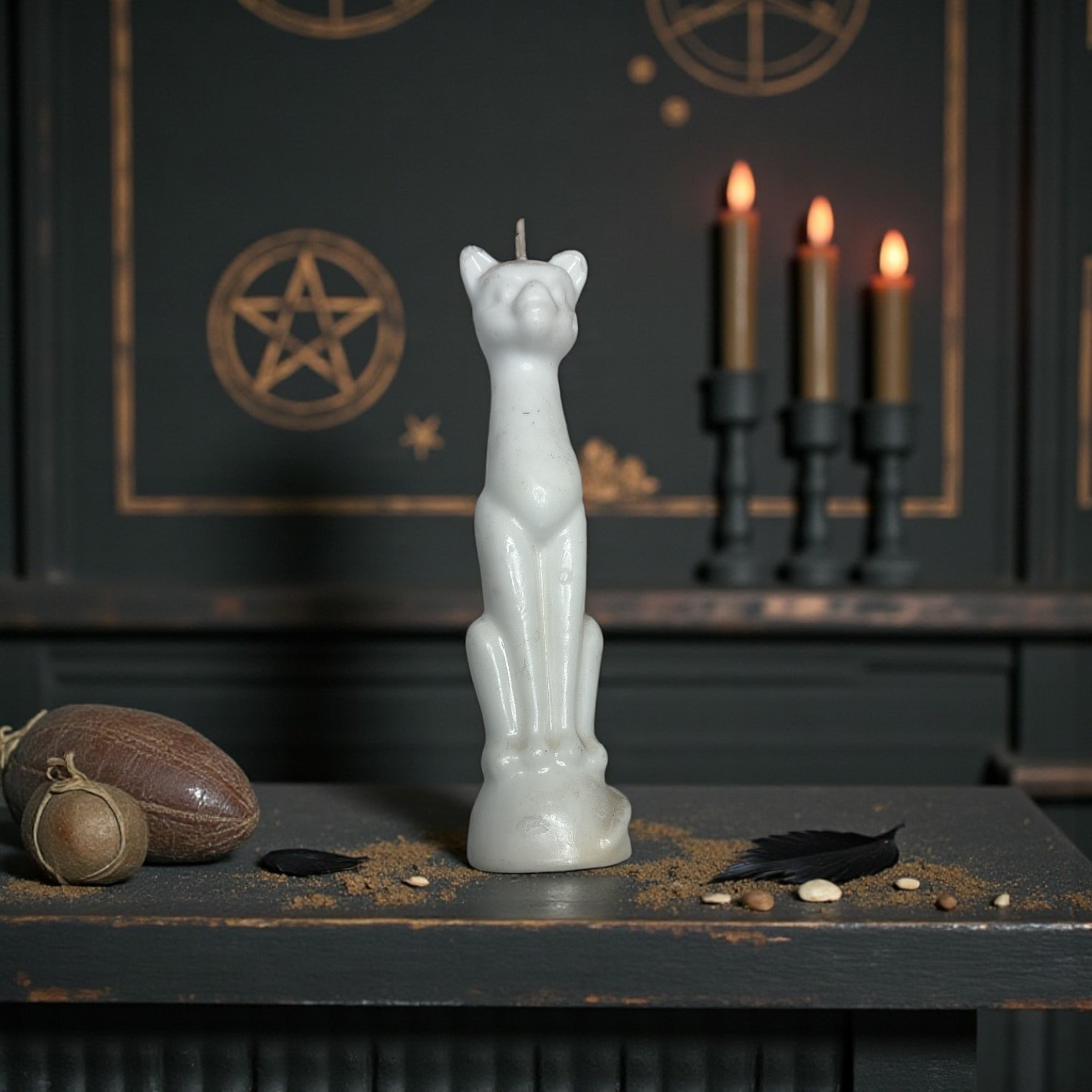 With its elegant design and smooth white finish, the White Cat Spell Candle can be used both as a decorative piece and as a ritual or intention candle. Whether placed on an altar, meditation space, or shelf, it adds a sense of serenity and focus to your environment.