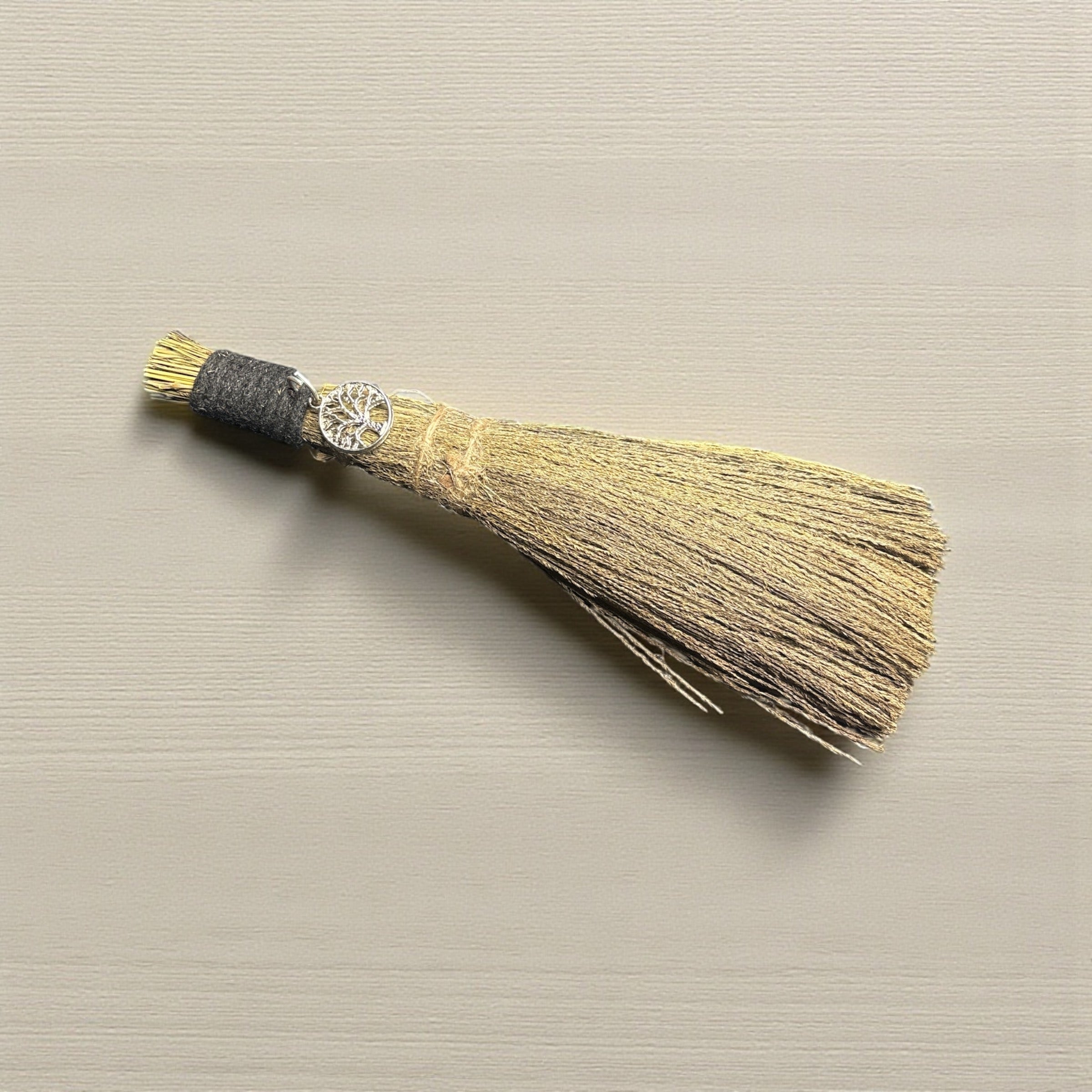 The magic broom (besom) symbolizes cleansing and new beginnings, while the Tree of Life represents the connection between mind, body, spirit, and the universe, making this charm a powerful everyday guardian.